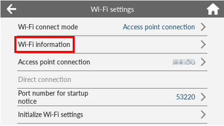 - Tap [Wi-Fi information] to display the [ScanSnap information] screen.